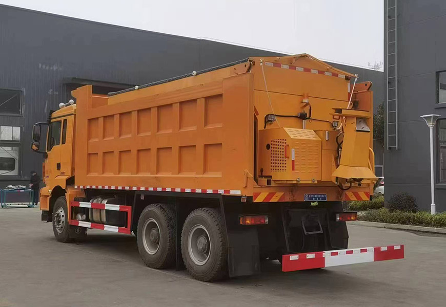 | 上裝配置 | 箱體采用優(yōu)質(zhì)碳鋼板,標(biāo)配10立方撒布機(jī)也可以選裝12立方,不銹鋼撒布機(jī)甩盤(pán),撒布盤(pán)直徑550mm,撒布機(jī)采用 V 型料倉(cāng),結(jié)構(gòu)簡(jiǎn)單可靠,使融雪劑自動(dòng)落料,出料完全,無(wú)殘留,箭頭燈、篷布、過(guò)濾網(wǎng)、后爬梯。加裝3.5米雪鏟,可切換3.5米除雪滾刷(滾刷可選自帶動(dòng)力或者液壓取力)。 | ||